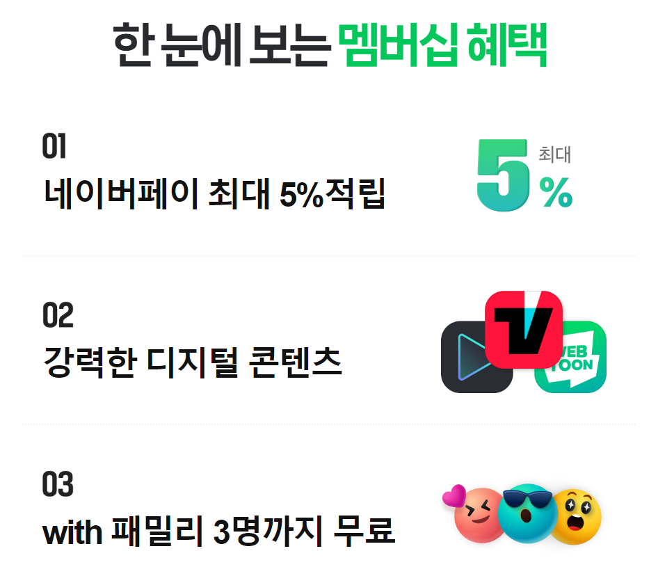 게다가 네이버플러스 멤버십패밀리 서비스로 나와 가족 3명까지 동시에 혜택을 받을 수 있으니 이쪽이 훨씬 가격적으로 유리합니다.