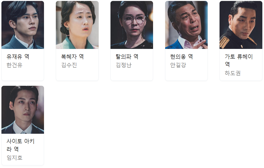등장인물 : 이연 역 (배우 이동욱), 류홍주 역 (배우 김소연), 이랑 역 (배우 김범), 천무영 역 (배우 류경수)