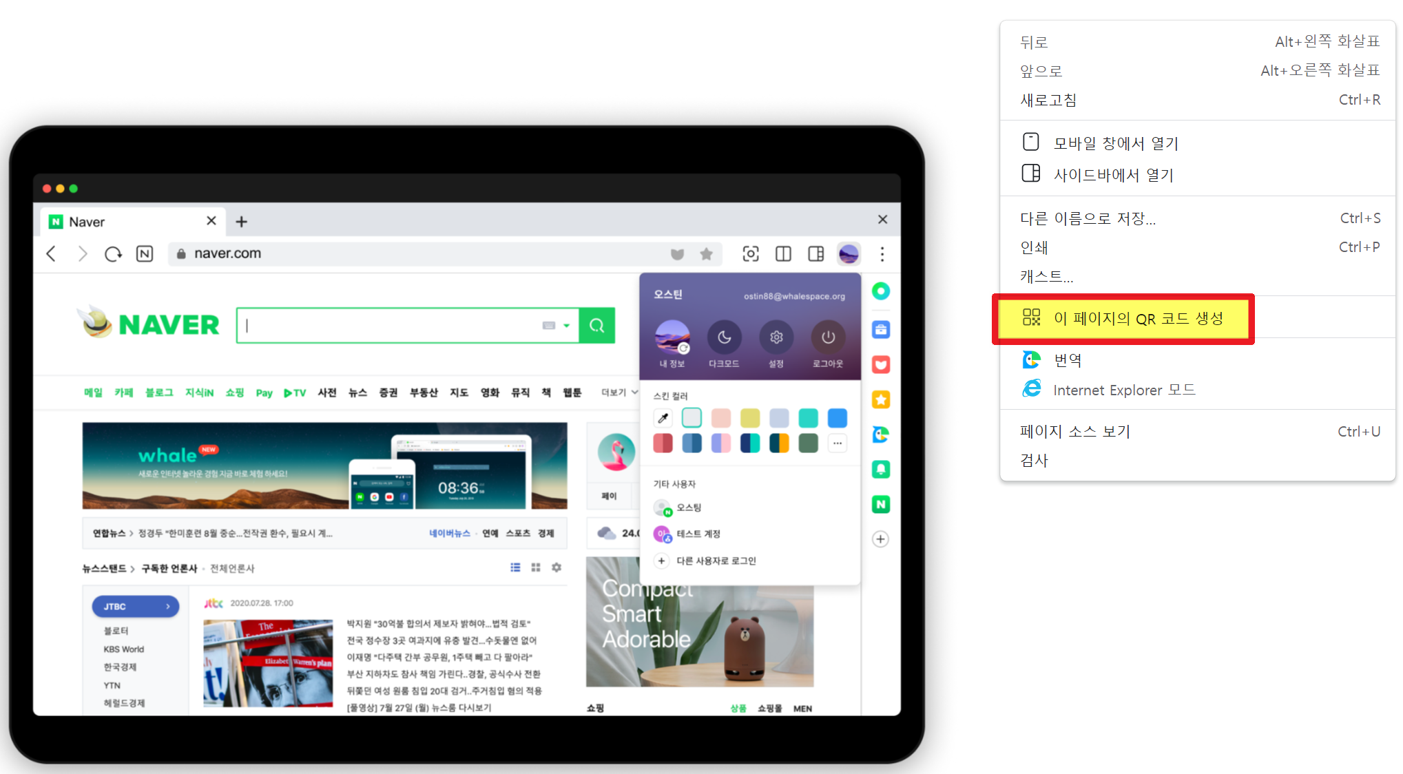 첫 번째 qr 코드 생성 프로그램은 네이버 웨일 브라우저를 활용하는 방법입니다.
